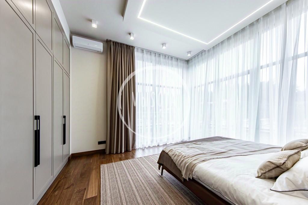 Предлагаем к продаже готовый к проживанию коттедж площадью 476 кв.м. на участке 12 соток правильной формы в КП ''Ренессанс парк''. Дом возведён в стиле ''хайтек'' из высококачественных материалов. Панорамные окна, большая площадь остекления и высокие потолки визуально увеличивают внутреннее пространство. Во всех помещениях много солнечного света в течение дня.