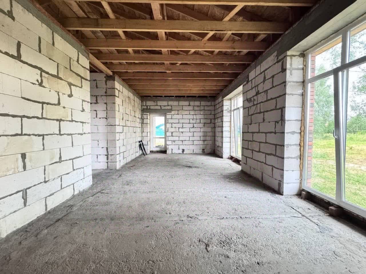 • Стены и перегородки: Толщина наружных стен — 55 см (газобетонные блоки D500). Внутренние несущие стены — 30 см. Внутренние перегородки — 15 см.