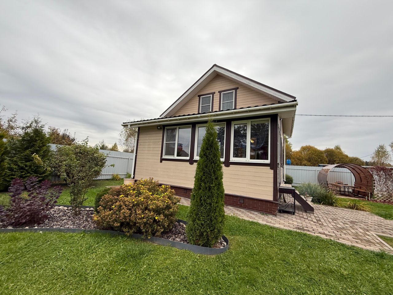 Дом продаётся со всей мебелью и техникой, кухонным гарнитуром, оборудованием, в том числе газонокосилкой, тримером и инструментами.
