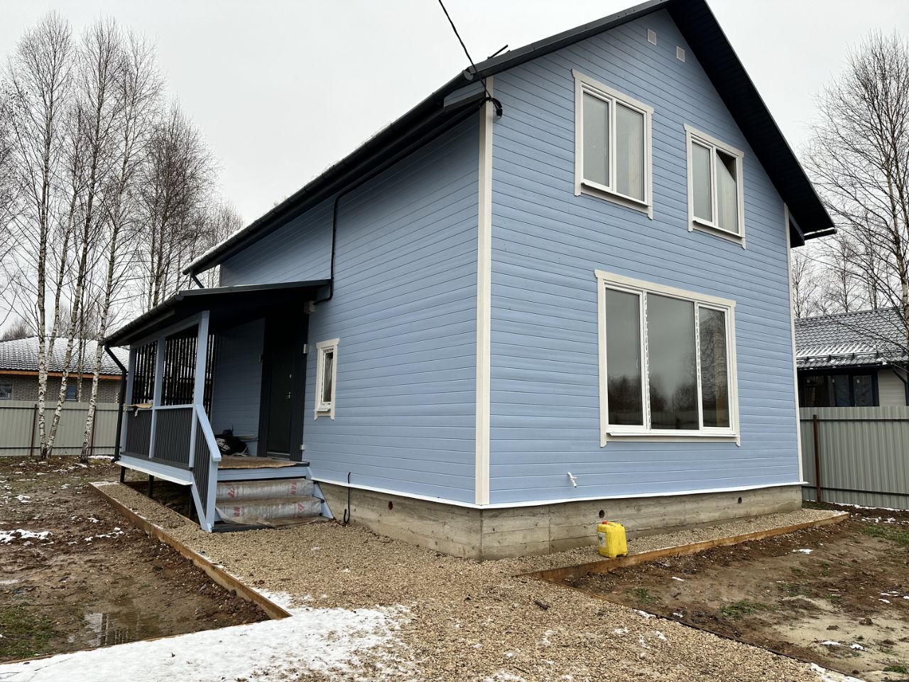 В доме: 3 изолированные спальные комнаты, большая ванная комната, выложенная плиткой, большая прихожая и топочная. Большие окна в гостинной делают это пространство особенно уютным, так как много света и тепла. Все коммуникации в доме: