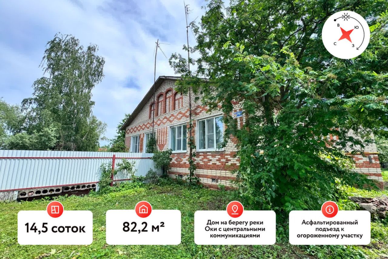 Продается кирпичный дом в селе Дединово, расположенном на берегу Оки. Это выделенная часть добротного строения общей площадью 82,2 м², включающая три комнаты, кухню, прихожую и кладовую. Планировка функциональная, помещения просторные, что делает дом полноценной альтернативой трехкомнатной квартире, но с дополнительными преимуществами — собственным участком в 15 соток. Земля плодородная, границы четко определены, конфликтов с соседями нет. Участок полностью огорожен, благоустроен и включает хозяйственный блок с гаражом. Подъезд к дому асфальтированный, коммуникации централизованные: газ, электричество, водоснабжение.